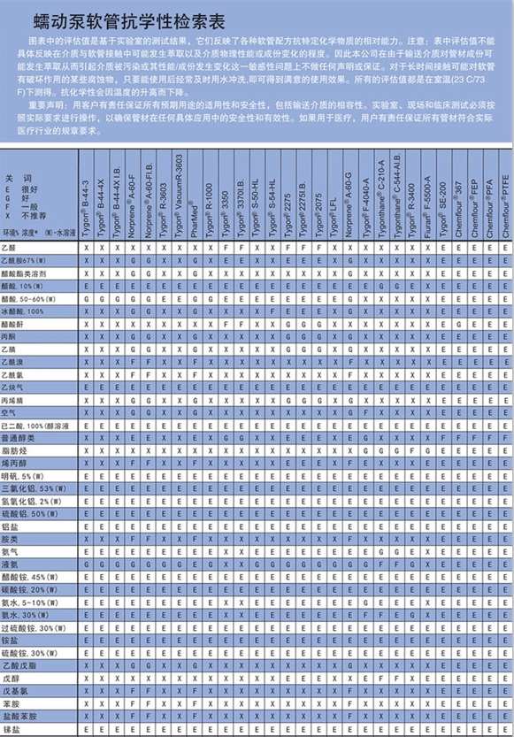 Search Key for Chemical Resistance of Peristaltic Pump Hose