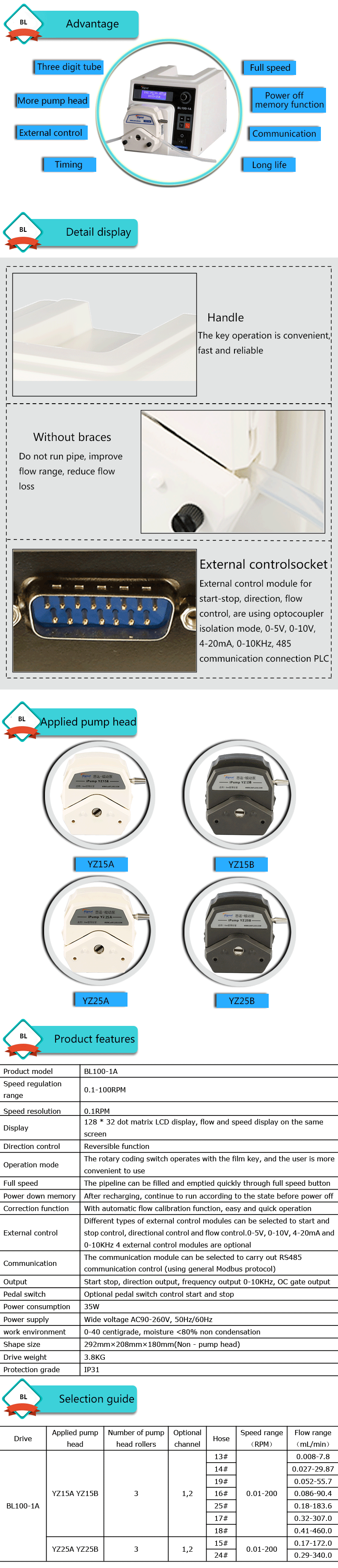 1. Flow range: 0.008-460ml /min